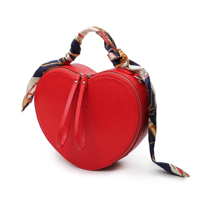 Elodie red bag is one cute look of a trendy bag sold on Edgability. This box bag is heart shaped, sturdy and solid, quite like what hearts in today's time, have become. The scarf wrapped around the handle gives the French chic style. This trendy handbag has quirky style as it is a playful what with the red heart design. There is a strap provided as well, to wear it like a sling bag or crossbody bag. A purse like this is minimalistic in style as there is a clean cut look, and this makes for a great look in edgy fashion. An embossed script is on the front, and the opening of the trendy bag is there too. A zipper runs along the front edge. Bloggers of the fashion community are bound to fall in love with this heart bag.