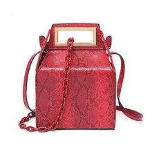 Jayde snakeskin bag is super rad when it comes to box bags. It emulates elements of edgy fashion that would appeal to a variety of fashionistas. The playful shape of the red bag takes you back to a fun time, while the animal print adds the exotic touch to the bucket bag. The rich red tones give the bold vibe needed for party style, which could also work as a date night look, when wearing this monotoned bag. The quirky style can be seen by way of the top handle, structured and finished with metallic gold, which also adds the classy look. Two sections come together, fastened by the side slits, to form the handle through which you can place your hand and use it as a clutch bag. The fun doesn't end here, this cute bag also has a red metal chain that can be attached onto the sides so that you can walk around town using the purse as a sling bag or even a crossbody bag. Lightweight and convenient in size, this classy bag is ideal for college style amongst young influencers or socialite ladies who flaunt their brunch style. The solid structure meets the wild side culminating into the perfect handbag of chic style. Jayde has all the elements to raise it to be a hit in blogger fashion, which is why Edgability.com presents only the best in trendy bags at affordable prices to women who shop online.