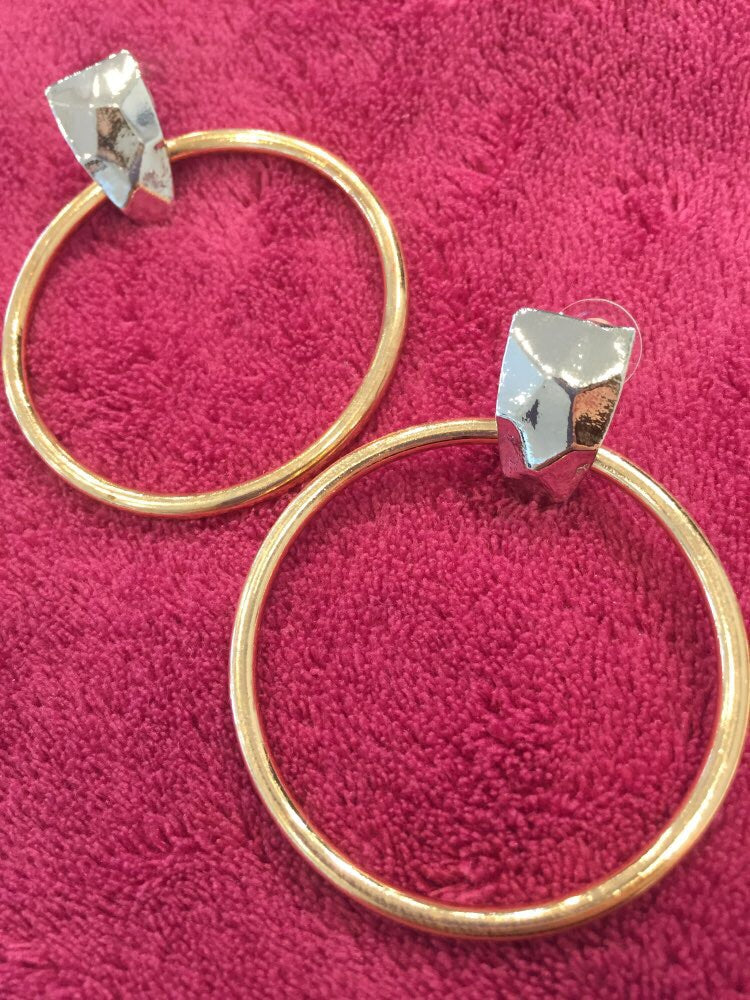 Blyton statement earrings can steal the show with it's unique design. The angular surface of the gunmetal silver clips, on which dangle the gold hoops, which happen to be of fair thickness, all of which make for edgy fashion accessories. Trendy jewellery like these gold earrings can add chic style to one's selfies. The clips on top are triangular shape wise with jagged edges. This quirky style reflects the light off in a resplendent manner. The entire set of trendy earrings for girls add a lot to their college style, moreover, level up their party look or date night look. Junk jewellery are popular in blogger fashion and rose gold jewellery, even more so. Edgability.com puts forth only classy statement jewelry at affordable prices to women who shop online.