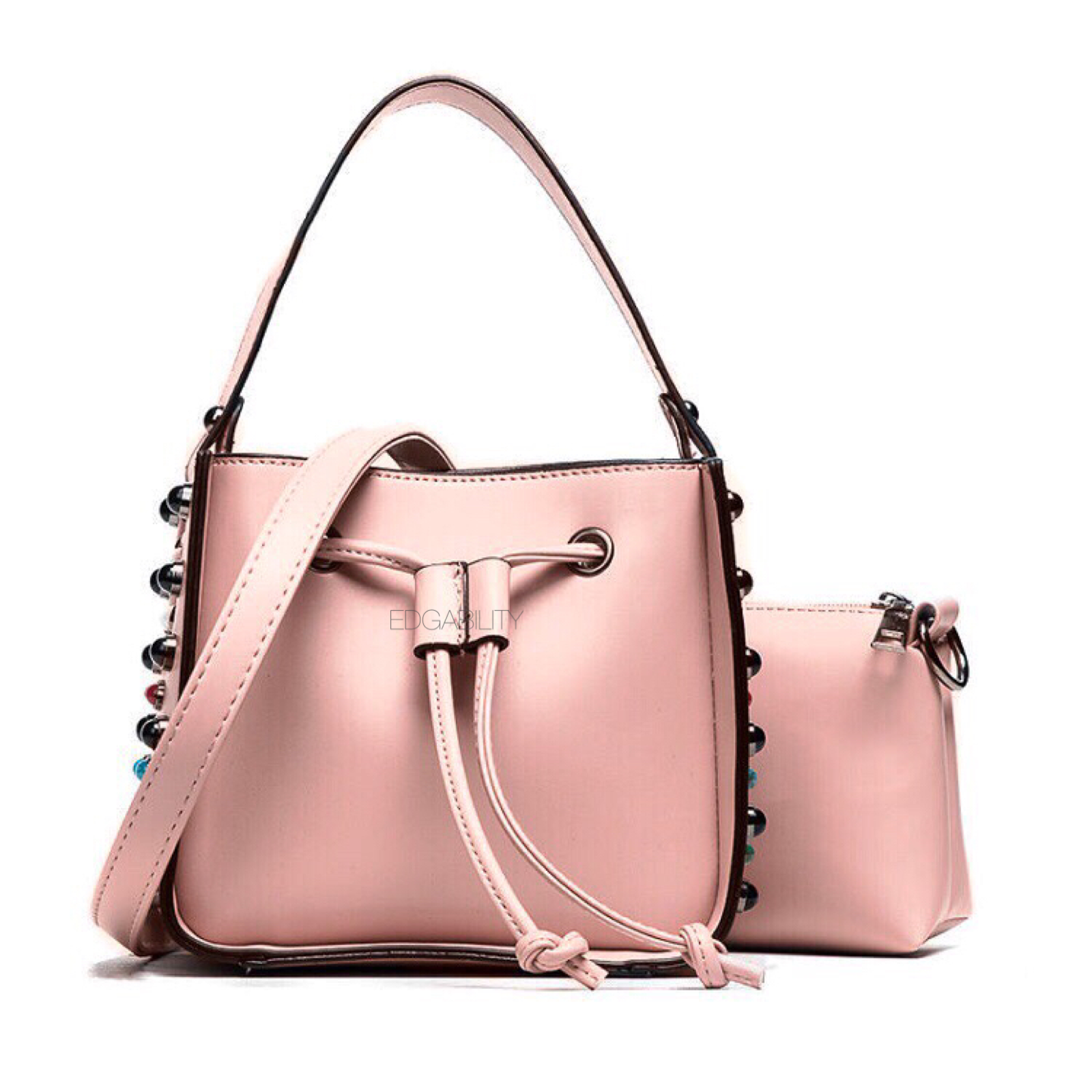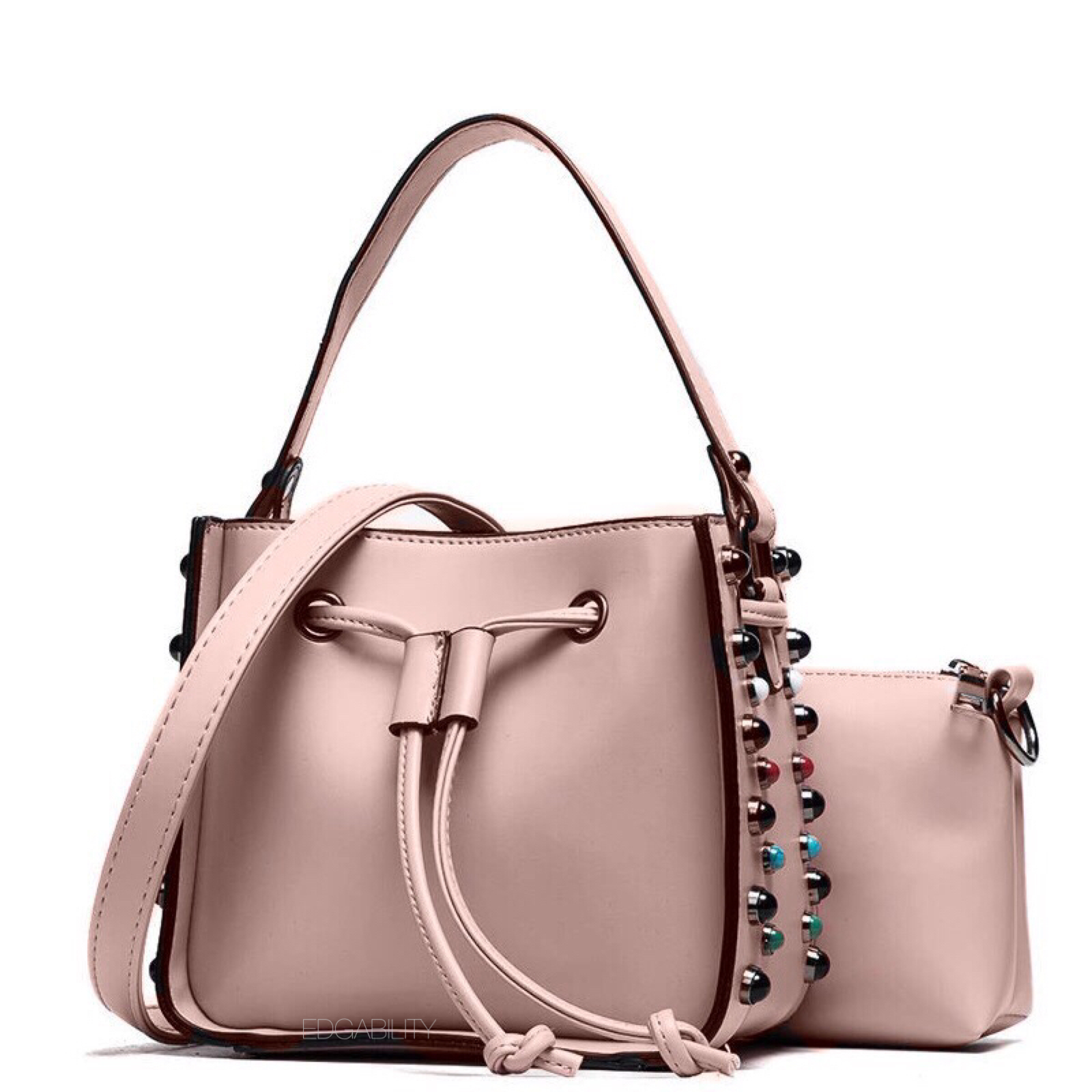 pink studded bucket bag edgability