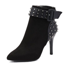 Denali studded boots are the edgy fashion enthusiasts' favourite pair of the season. The tiny rivets on the ankle boots are placed on the belt around the ankle along with a buckle for added effect, as well as the heel top. The suede like soft material on the heeled boots gives it a solid and sleek look, against the studs on the black boots. The fit is narrow, the toe is pointed and the shape is curved closely on the black shoes, all giving the wearer a slimming effect. There is a zip on the inner portion of the trendy shoes for ease of wearing. These statement makers are the perfect party look, and are social media friendly too. Edgability.com offers the best in trendy footwear at affordable prices to women who shop online.