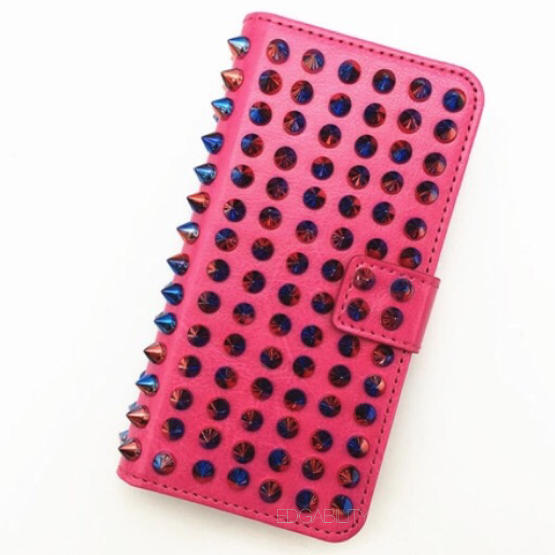 Tutti fruity pink iphone case will be the showstealer of the evening. The multicoloured spikes on the mobile cover are reflective and studded all over. All the aspects of edgy fashion are visible on this fashion accessory. Edgability sells the best in trendy accessories at affordable prices to women who shop online. It also has a flap to lock the case from opening. Comes only in one size, iphone 6/7.